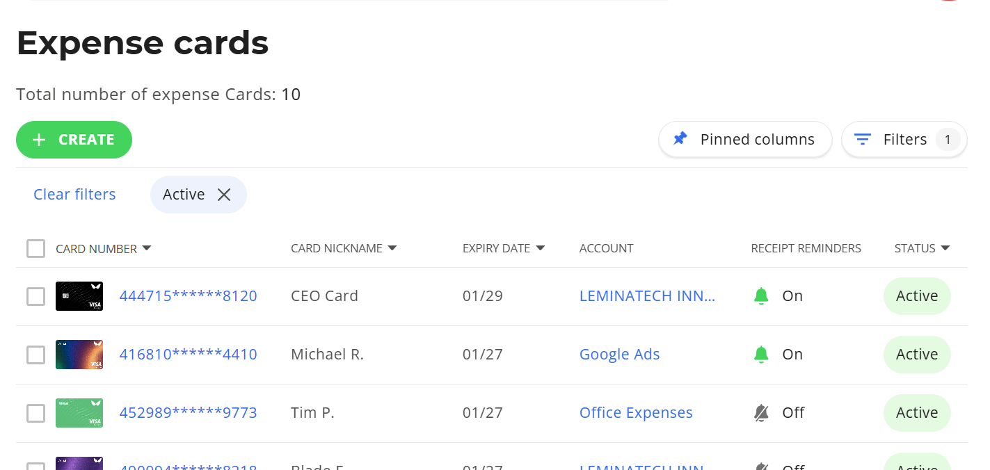 | Free | €0 | 300 virtual cards, unlimited physical cards, unlimited users |